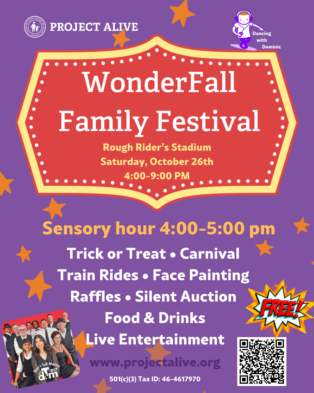 The Hunter Syndrome Foundation/Dancing with Dominic and Project Alive are teaming up to host the WonderFall Family Festival on October 26, 2024 at the Rough Rider’s Stadium in Frisco, TX!